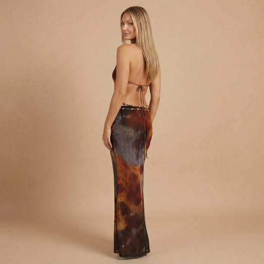 Women's Cocktail Cutout Sleeveless Maxi Dress With Ruffle