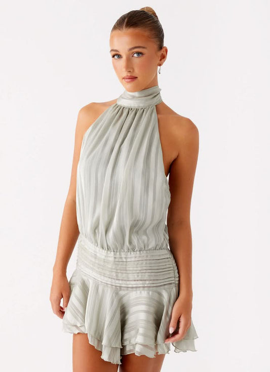 Women's Cocktail Halter Open Back Ruffle Mini Dress