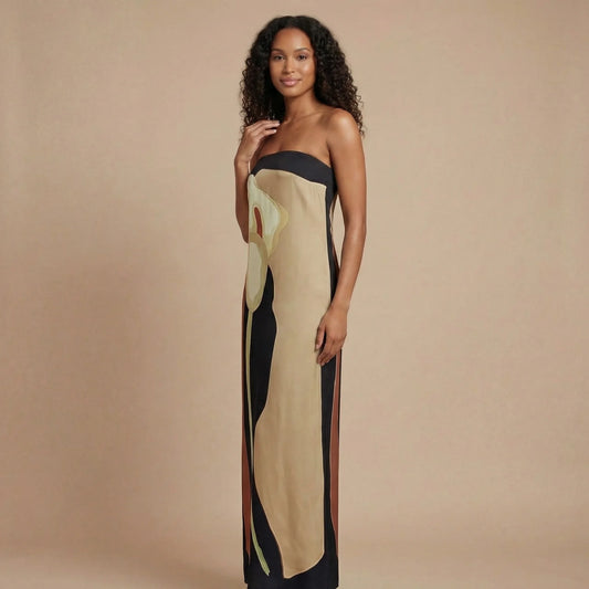 Women's Wedding Guest Strapless Abstract Maxi Dress