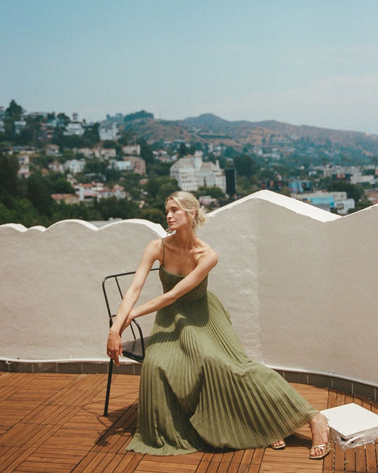 Women's Wedding Guest Pleated Sweetheart Maxi Dress
