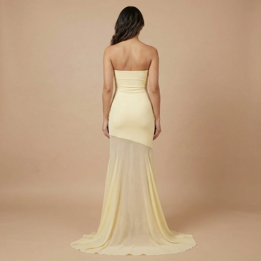 Women's Formal Strapless Maxi Dress With Sheer Mesh Skirt