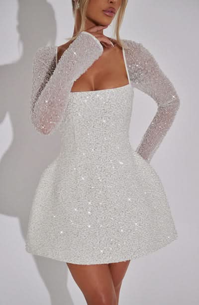 Women's Cocktail Square Neck Sequin Mini Dress