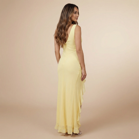 Women's Wedding Guest V Neck Ruffle High Low Maxi Dress