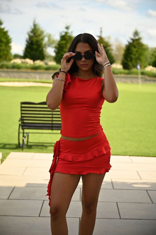Women's Summer Ruched Sleeveless Mini Skirt Set