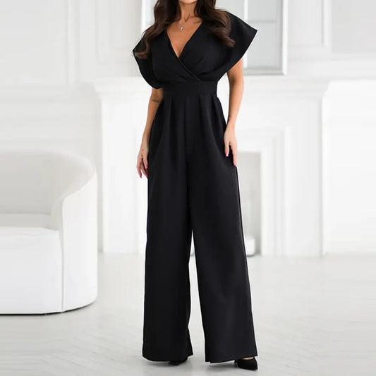Women's Cocktail Wrap V Neck Wide Leg Jumpsuit