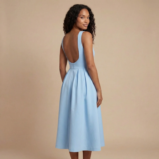 Women's Wedding Guest Sleeveless Boat Neck Midi Dress