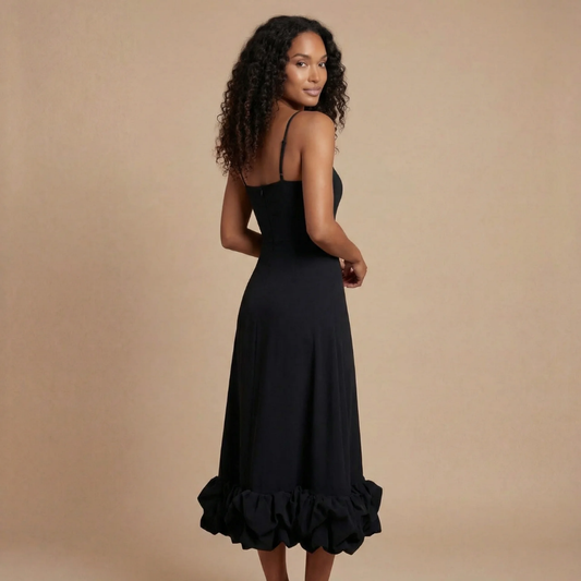 Women's Cocktail Square Neck Ruffle Hem Midi Dress