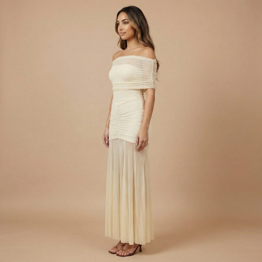 Women's Wedding Guest Off Shoulder Ruched Maxi Dress