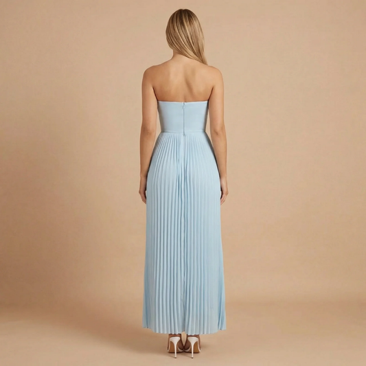 Women's Wedding Guest Strapless Pleated Maxi Dress